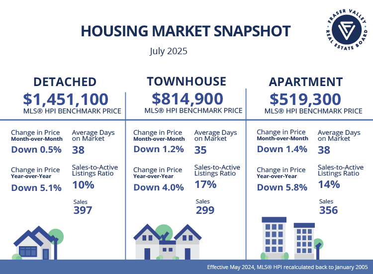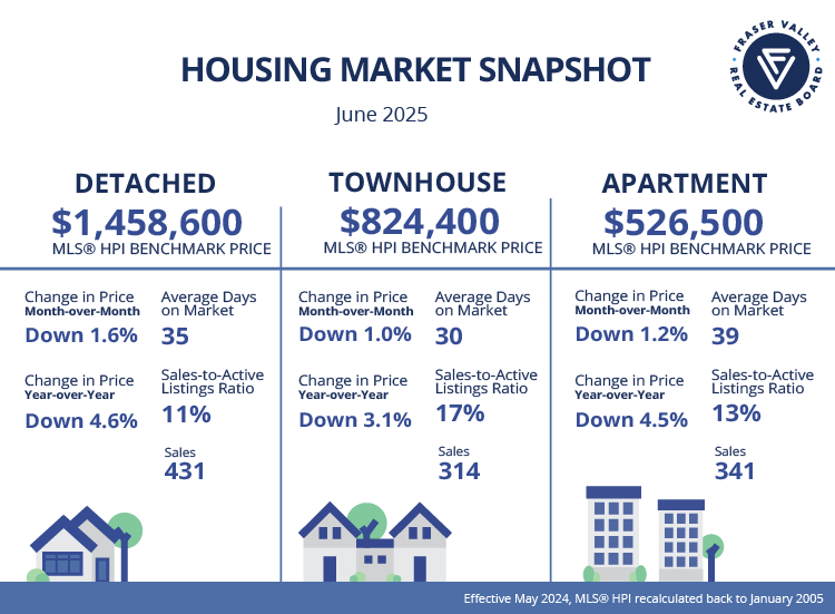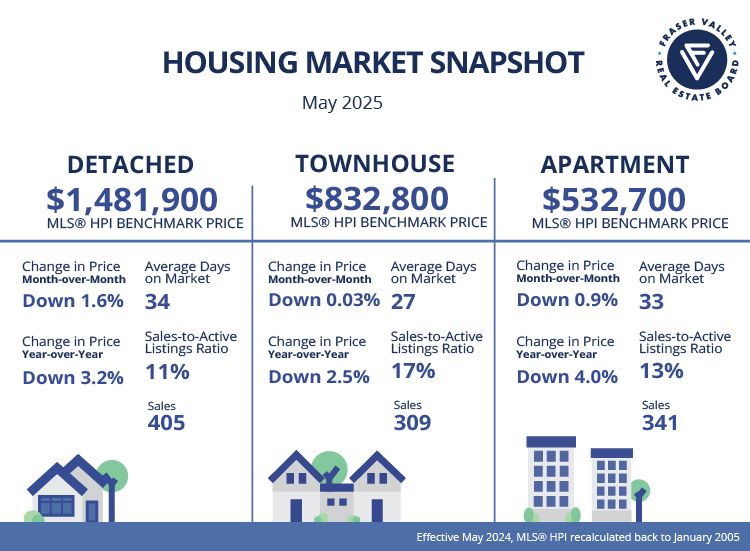 Townhomes: At $786,000 the Benchmark price for an FVREB townhome decreased 1.2 per cent compared to September 2025 and decreased 5.6 per cent compared to October 2024.