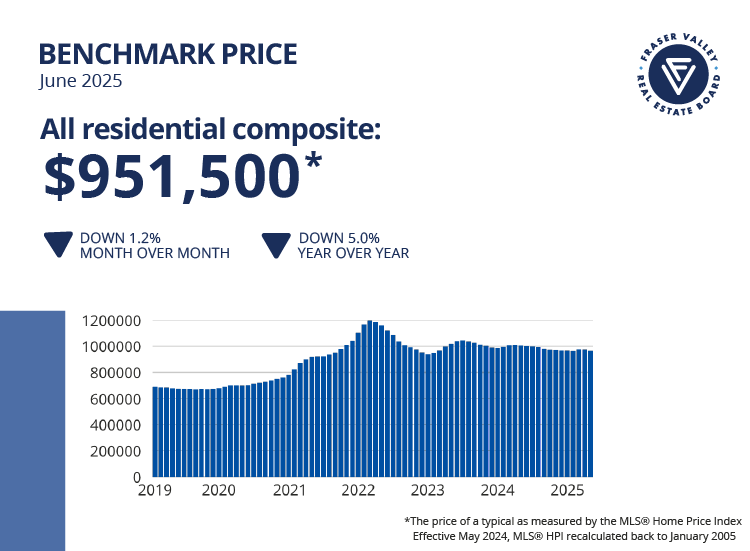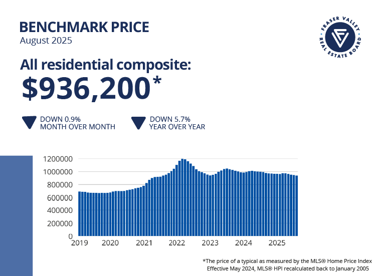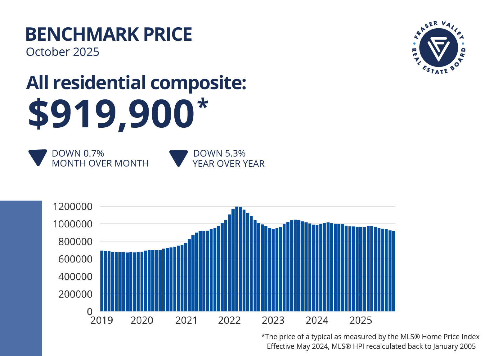 The composite Benchmark price for a typical home in the Fraser Valley decreased 0.7 per cent in October, to $919,900.